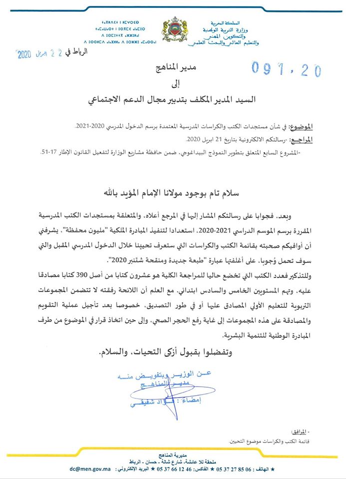 عشرون كتابا مدرسيا جديدا برسم الدخول المدرسي 2020 2021 مراسلة وزارية